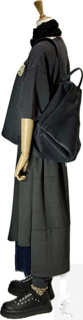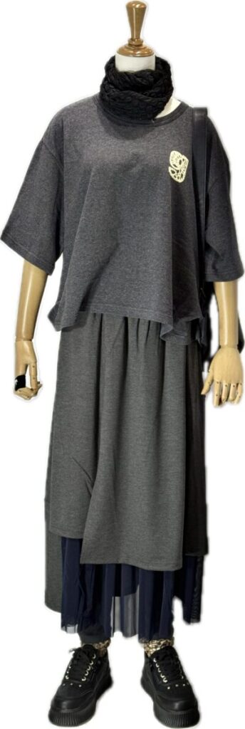 前後差のある丈感でヒップ周りをカバーします。