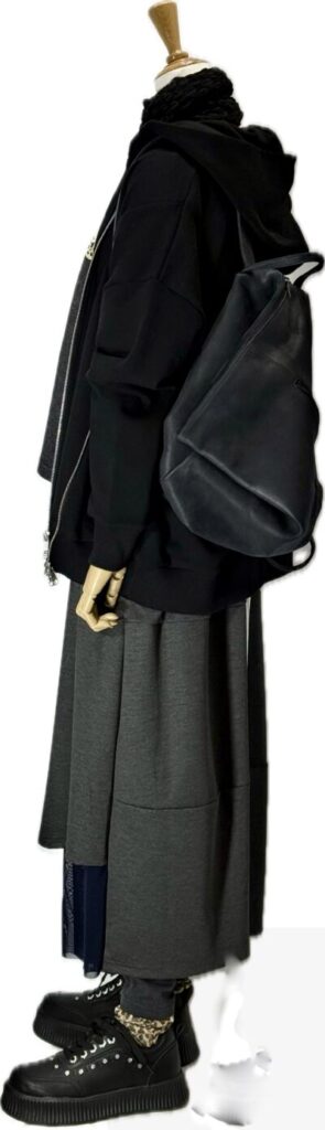 モノトーンカラー Wジップ フードジャケット&半袖スエット& レギンスとロンスカのドッキングスカート