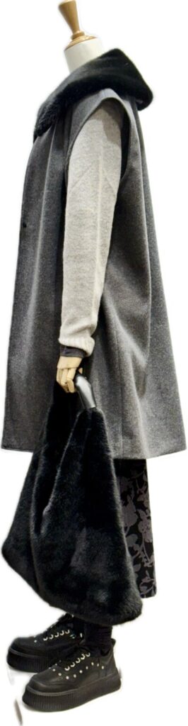 ジレ肩幅広目で華奢見せ効果