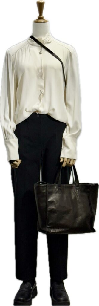 このセットアップにぶらっくのブラウスを