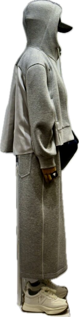 季節を繋いでいく 軽い色 薄いグレー 段ボールニットのフーディジャケット