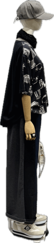 Tシャツも後ろはブラックT でヒップをすっぽりとカバー