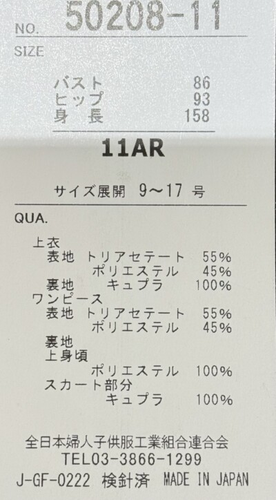 こちらのツインスーツは 11号