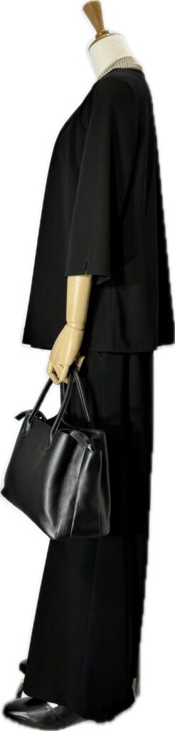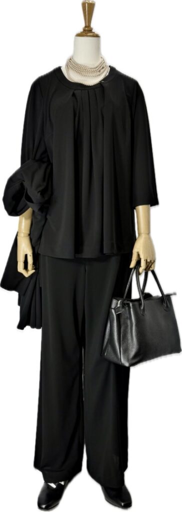 ブラックフォーマルも時代が 変わりました。 柔らかい素材 ワイドパンツ