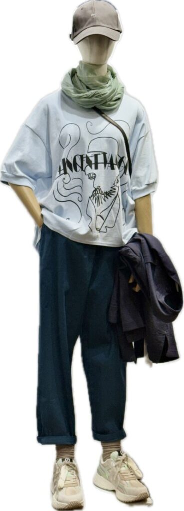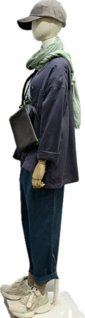 Wガーゼのジャケットとイン半袖T ブルーグリーンテーパードパンツ