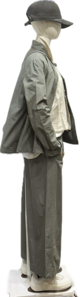 スカートに匹敵するフレアーパンツとテラーラインジャケット
