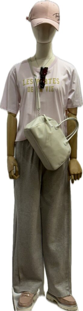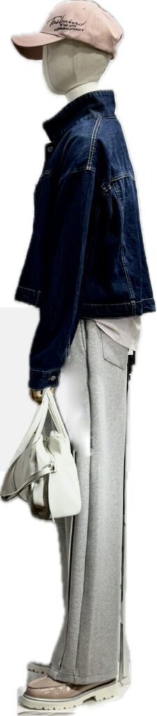 ショート丈 ワンウオッシュ &GジャンとベビーピンクT &スエットワイドパンツ