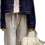 サスペンダー付き ワイドパンツとノーカラージャケット