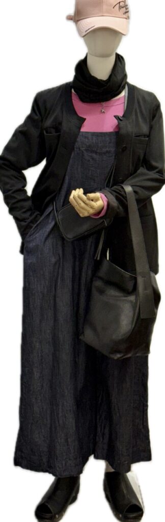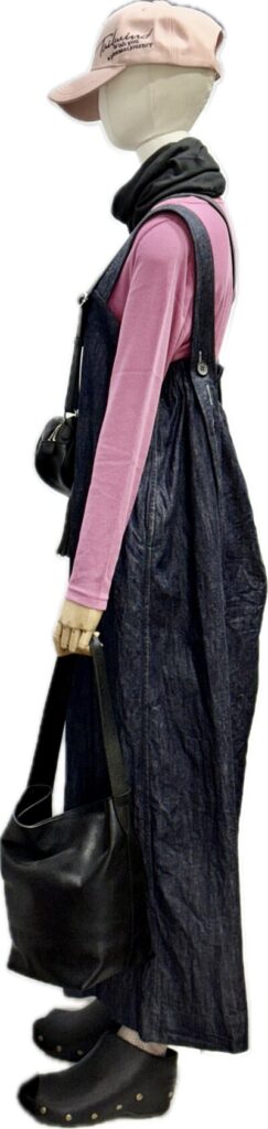 デニム布サロペットワイドパンツ と綺麗色のロンT