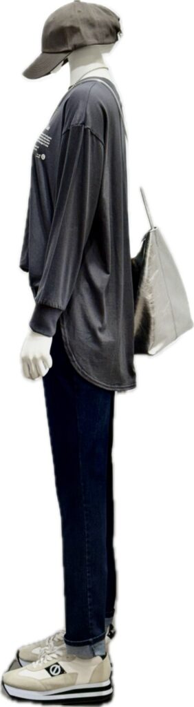 ロゴ T グレー 丈長め スキニーには丁度いい丈感