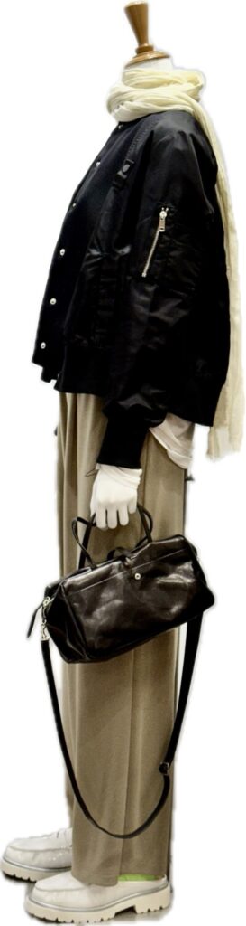 ニットとサテン布のドッキングラインのMA1ブルゾン