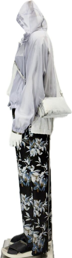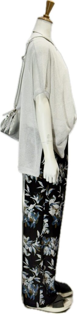 薄紫 シスルーフードブルゾン インにシルバーグレーサマーニット