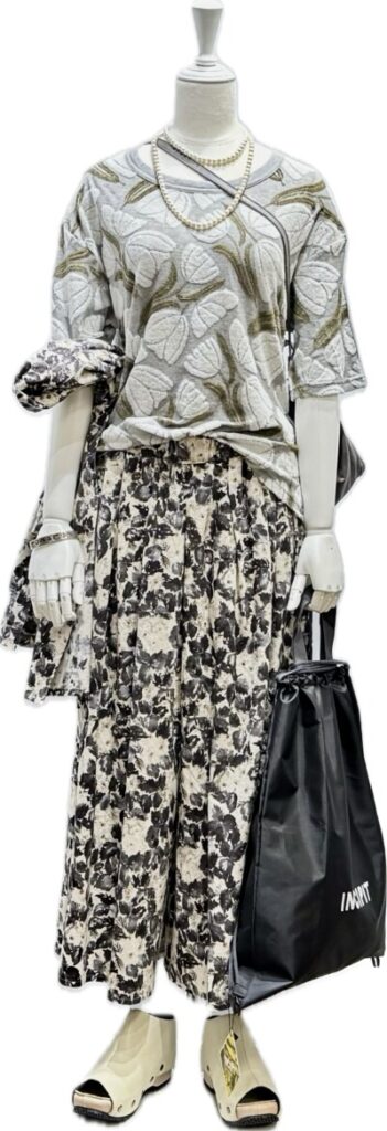 花柄 埋もれないベーシックライン シャツとギャザースカート