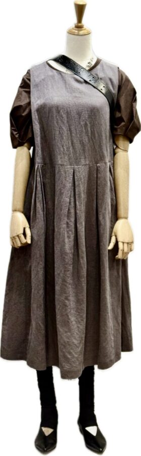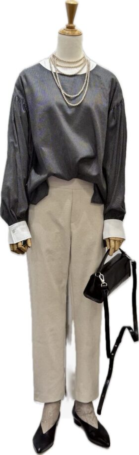 大人のカジュアル ブラウスとカッソーの中間 カジュアルに品よく・・・ベロア風 ボトル ローネック プルオーバー ブラウン 今年ラインのふんわりした袖 素材 ポリエステル60%トリアセテート30%レーヨン7%. ウレ...