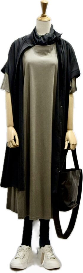 寒いのと程々に暖かさの繰り返しに毎日、 温度調節出来る、重ね着のお洒落コーディ フェイクムートンロングベストと ハイネックデザインスエット 差し色にした ベージュの暖かスエットハイネック まるでニットのようなラグランス...