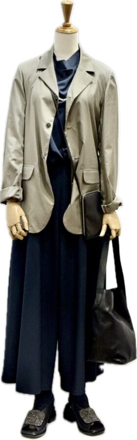 日常にレデイ ライクなスパイス アイボリーベージュのジャケット ノーカラーの襟元 素材 毛60%. ポリエステル 30% レーヨン3%. ナイロン3% 軽く。暖かく ビックシルエットライン まだまだインに重...