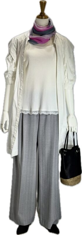 おしゃれの再起動 カットソー布のセットアップで テーラーラインのジャケットとワイドパンツ きちんとしないスーツ でも・・・・やれば出来る スーツです。 ただ生地が柔らかく動きやすく・・・ 色々な目的でインナーをきちんと...