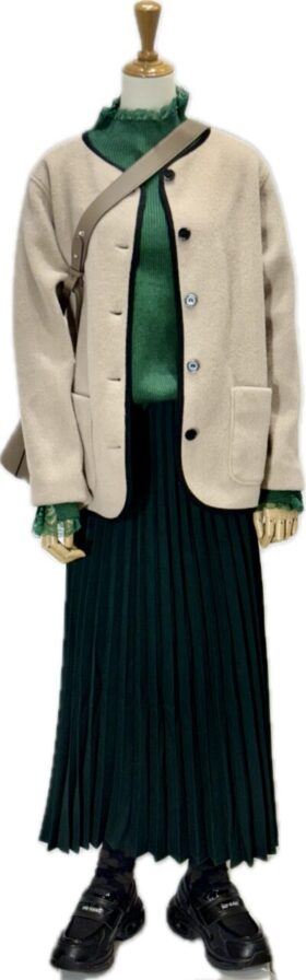ニットの前の重ね着コーディ ビックシルエットラインのGジャン 今季はいろいろなGジャン出てきてます ~各ブラント作ってる~ 以前のラインではなく  長かったり、ビックシルエットでショート丈だったりと  ワイドなパンツにバ...