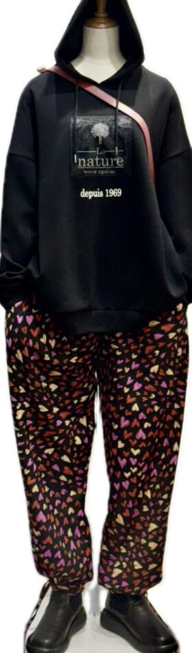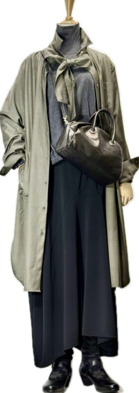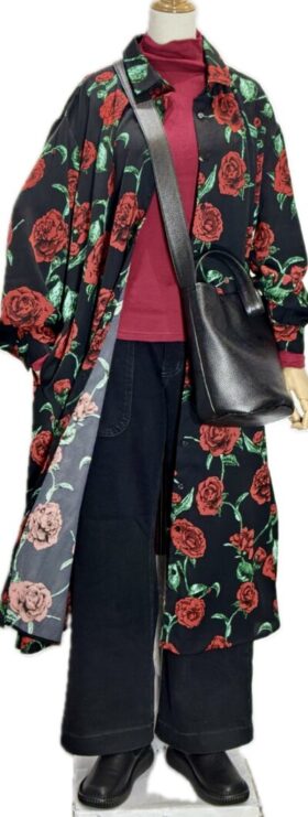 シャキッとしたい日   原点回帰してスキルアップ ストールとコートの感覚のワンピ ブラック デニムのワイドパンツ  爆暖仕様 SANDAY ポリエステル 100%  ブラックベースの薔薇柄 小粋な大人仕様に 顔バレしな...