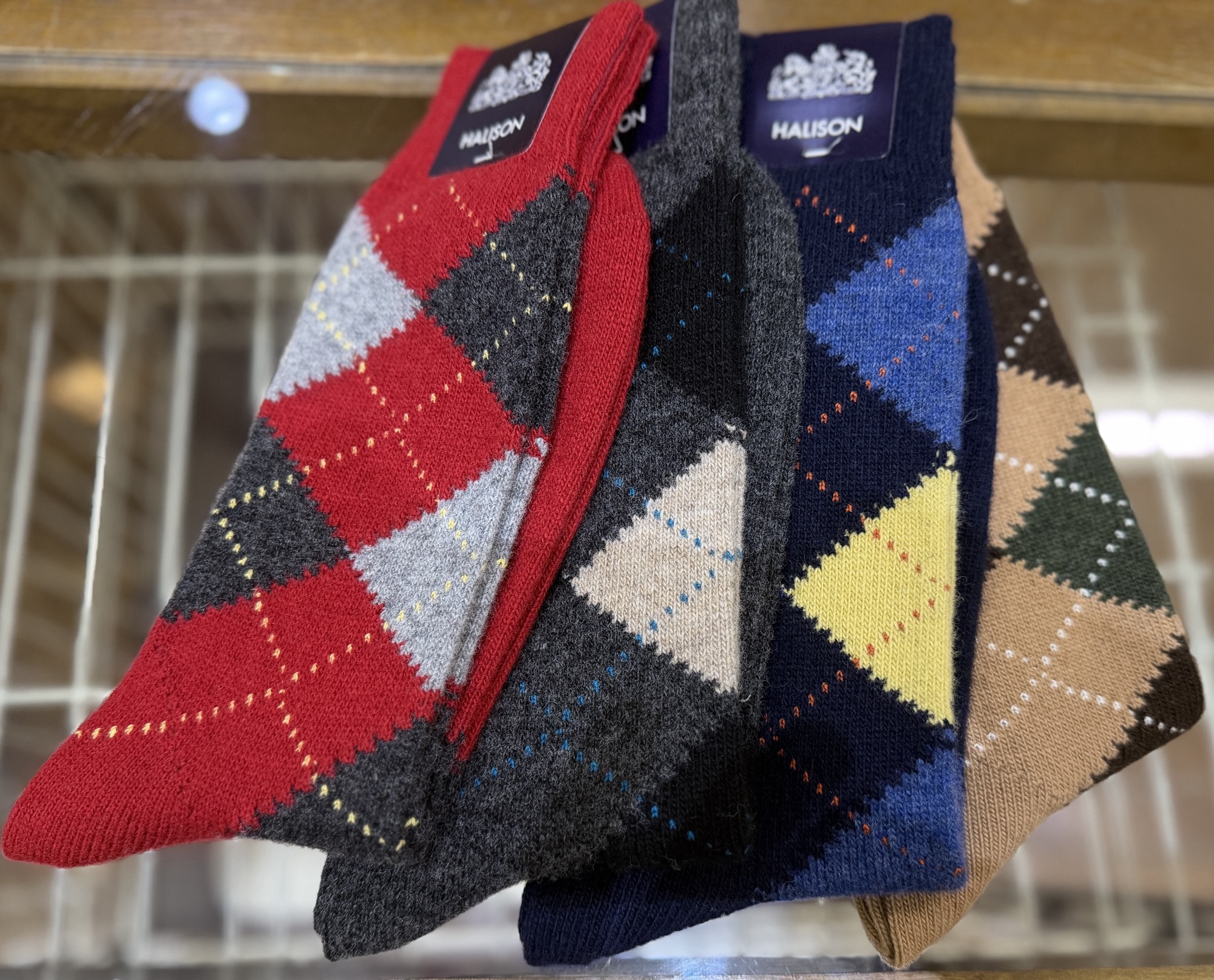 MEDE IN JAPAN ソックスのHALISON(ハリソン)の冬の定番アーガイルソックス、ボーダーソックス、フェアアイルソックスが入荷しました。寒い冬を足元から温めてくれる優しソックスです。MEDE IN JAPANですので、履き心地抜群。プレゼントにも最適です。